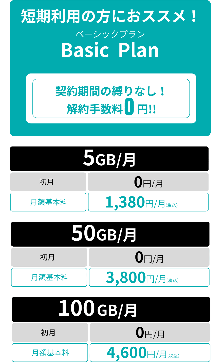 契約期間の縛りなしベーシックプラン